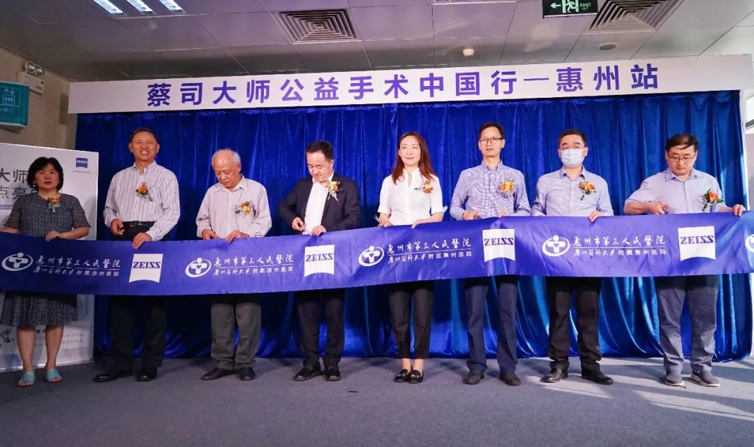 上午9点,仪式在嘉宾的热烈掌声中拉开序幕。惠州三院副院长、神经医学中心主任李雪松教授发表讲话,向在座嘉宾表示热烈欢迎。随后,原广东省医学会神经外科学分会主任委员林志俊教授、广东三九脑科医院陆永建教授等专家教授及蔡司外科事业部全国总监钱莹等嘉宾共同进行剪彩仪式,并现场向到场嘉宾揭开机器人手术显微镜(KV900)的神秘面纱。